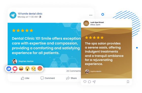 Easily transform your reviews into visually appealing social media posts that will catch the eye of potential customers. Make your business stand out with eye-catching graphics and professional-looking social media posts.