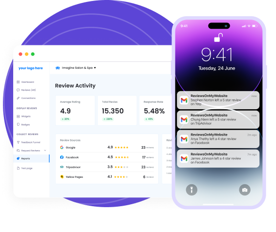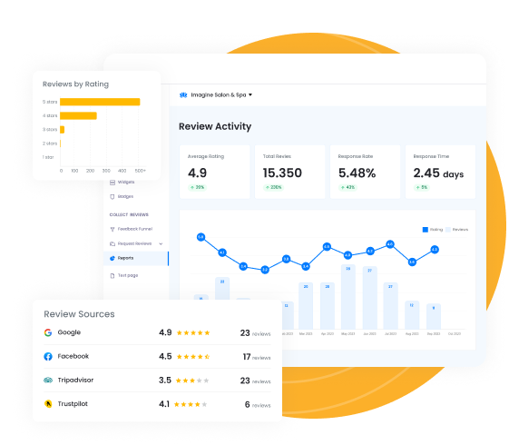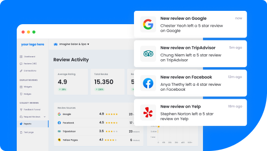 Stay on top of every review across Google, Facebook, Yelp, and more.