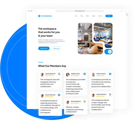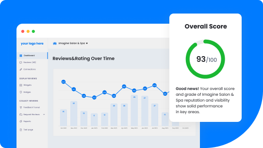 Show your clients’ best feedback on their site and send branded review requests by email or SMS. Build trust while getting a steady flow of 5-star reviews.