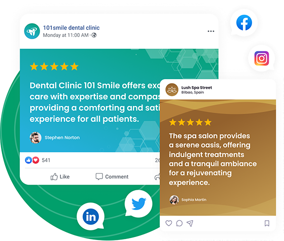 Share glowing testimonials to Facebook, Instagram, and Google with one click. Amplify each client’s reputation and expand their reach online while your agency earns recurring revenue in the background.